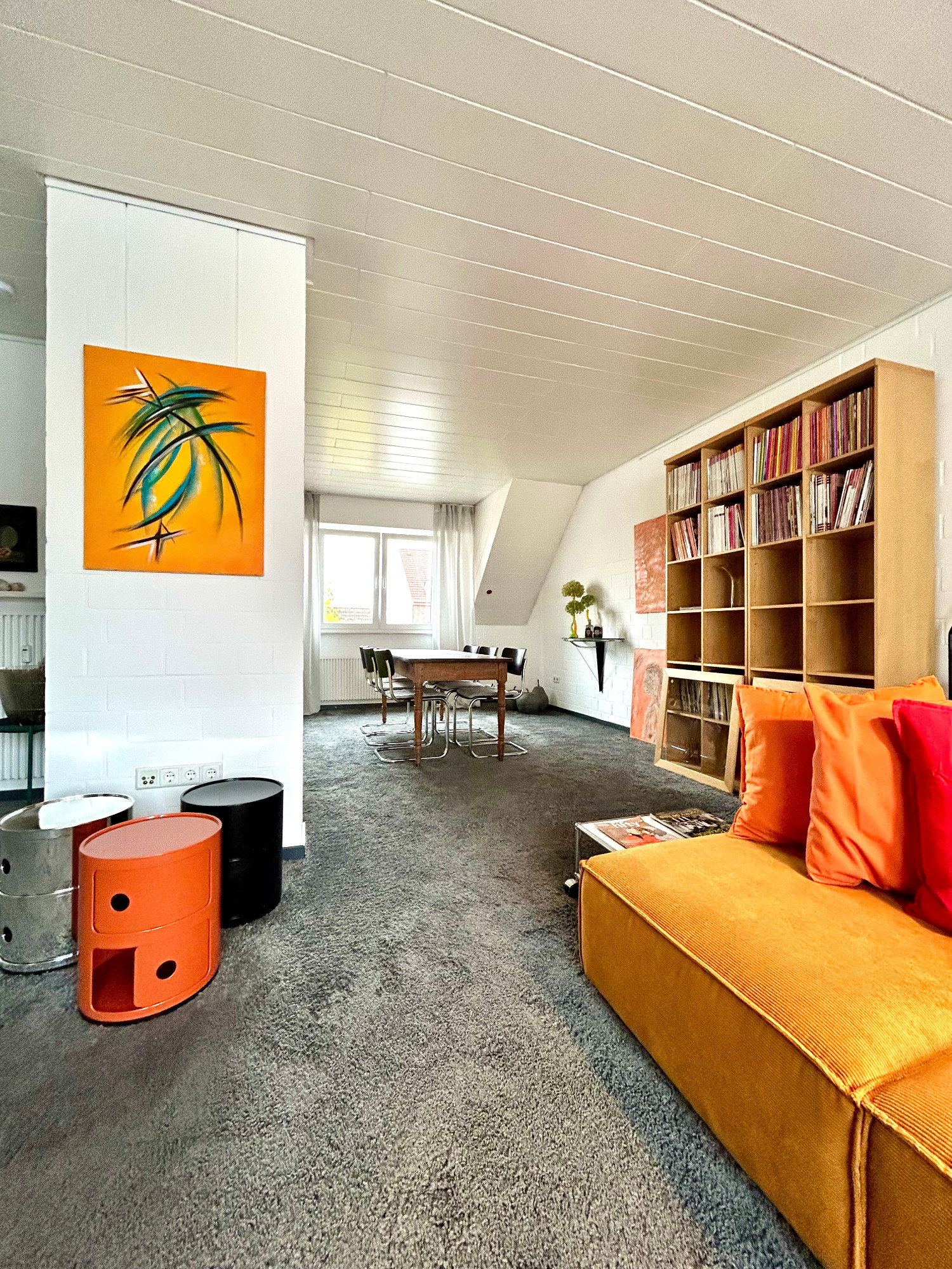 Die KunstWohnung in einem ruhigen Geschäftshaus bietet Ihnen ein stilvolles Zuhause auf Zeit - mitten in der Stadt und über den Dächern von Dülmen, mit Weitblick. Ob für ein Wochenende, einen Monat oder als temporäre Wohngemeinschaft. Für Übergänge, Projekte, für Einzelpersonen, Familien oder Gruppen mit ähnlichem, thematischem Fokus. Hier finden Sie Raum für Rückzug, Begegnung und neue Perspektiven.